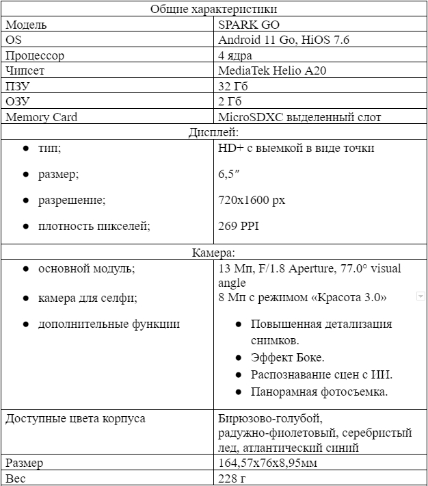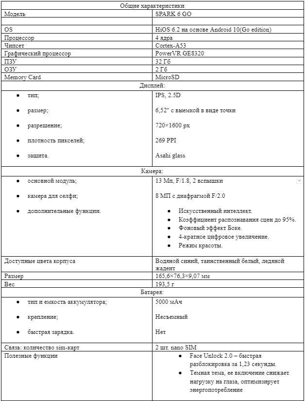 TECNO SPARK GO 2022 – телефон для тех, кто ценит простоту и комфорт. Бюджетная модель с отличными характеристиками – мощная батарея, наличие модуля NFC оплаты. Внешний вид устройства не создает впечатление дешевого телефон. Он актуальный, современный и модный. Передняя камера оснащена вспышкой, что не часто встретишь в бюджетных моделях.